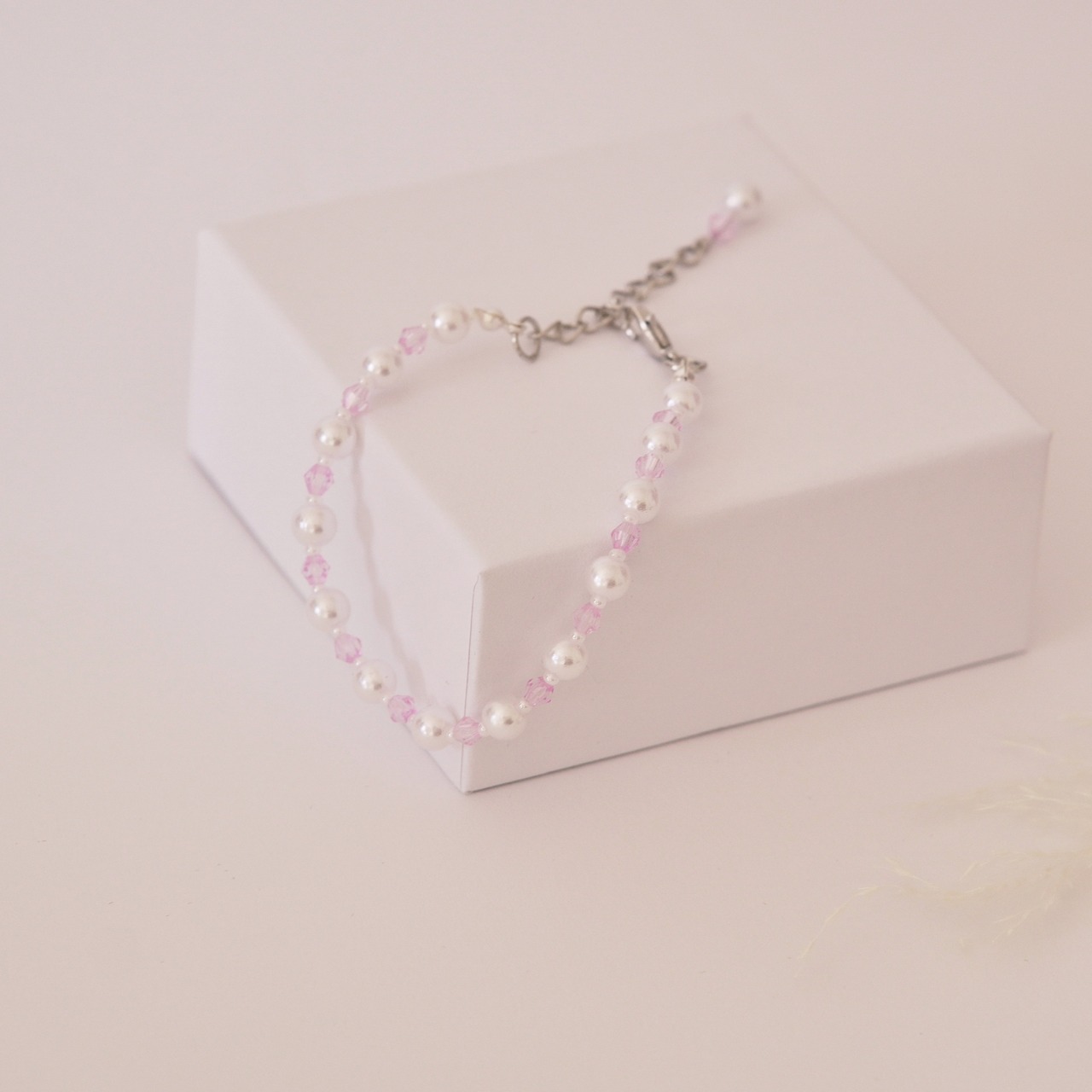 いつも身につけていることで、自分へのごほうびとし、自信を持つことができます。一点一点、丁寧に制作しています。大切な方への贈り物としてもぴったりです。華奢なブレスレットなので、取り扱いにはご注意ください。お手入れも簡単で、柔らかい布で優しく拭くだけでOKです。是非、可愛らしさとエレガンスを感じてください。