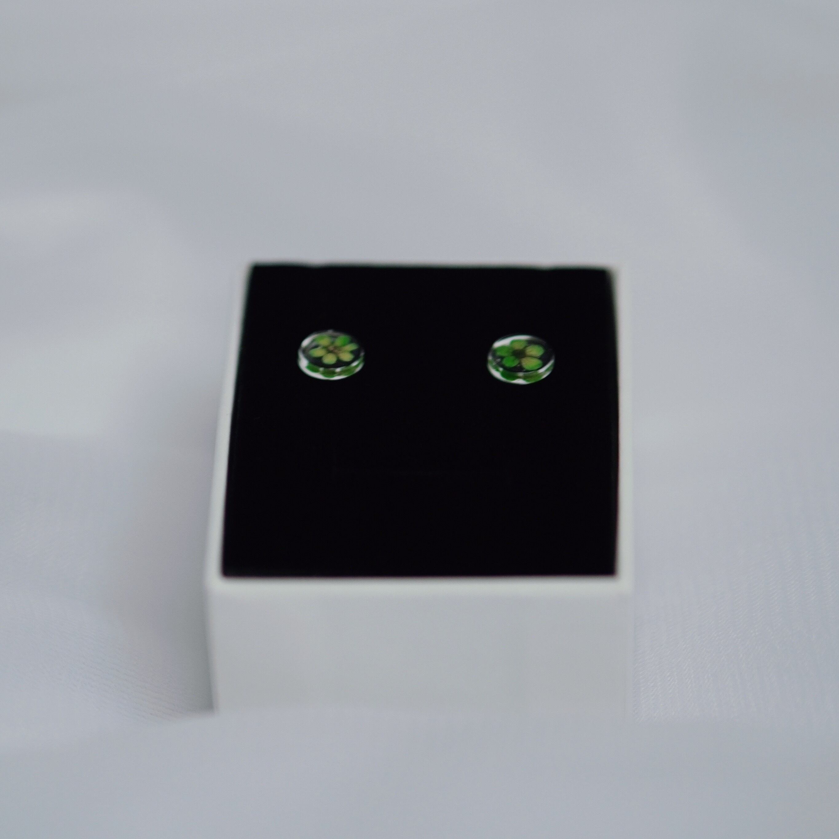 この緑の花が、あなたの耳元に優しい気持ちや幸せを運んでくれることでしょう。日常にちょっとした華やかさをプラスしてくれる、可憐なアクセサリーです。